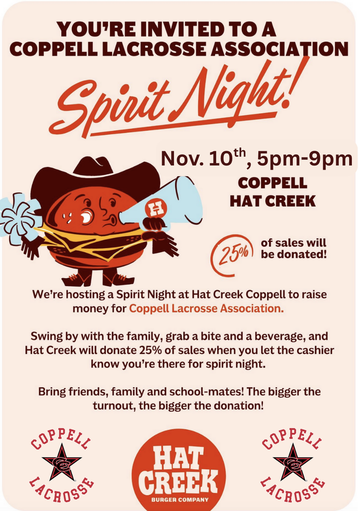 Coppell Lacrosse Spirit Night Nov. 10th